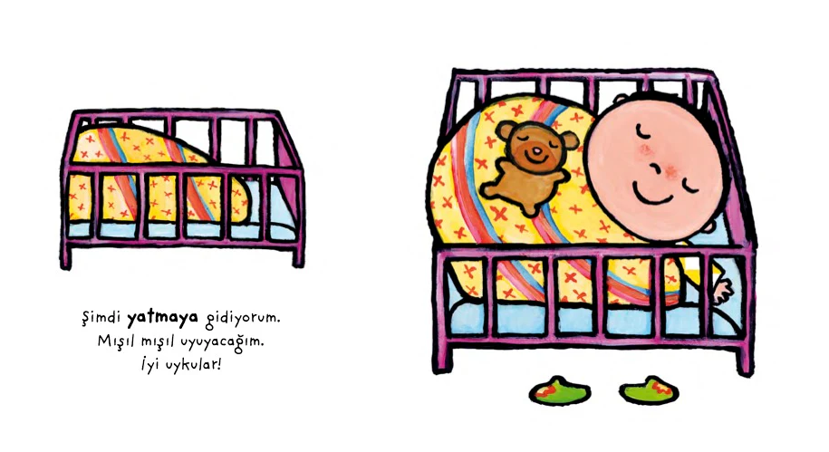 Banyo ve uyku rutinlerine dair kolay anlaşılır ve ilgi çekici resimlerle dolu, neşeli bir kitap. 12 ay ve üzeri çocukların günlük hayatına odaklanıyor.